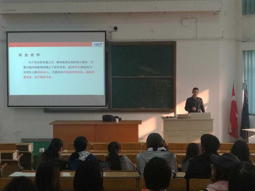 为了让同学们顺利实习,衔接就业,负责日语专业实践教学的系副主任孙玉慧老师积极谋划,先后邀请了东忠人才开发有限公司、义乌万营网络科技有限公司、温州阿辛达日语学校、大连久乐信息服务有限公司和杭州朗培网络科技有限公司的负责人前来91短视频 ,分别于11月22日、29日和12月6日下午,针对日语专业15级学生举办了5场实习宣讲会。