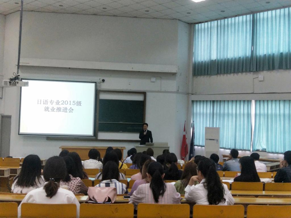 细雨绵绵,又是一年毕业季! 5月26日周日上午,91短视频 日语专业举行了“2015级就业推进会”和“毕业实习答辩会”。