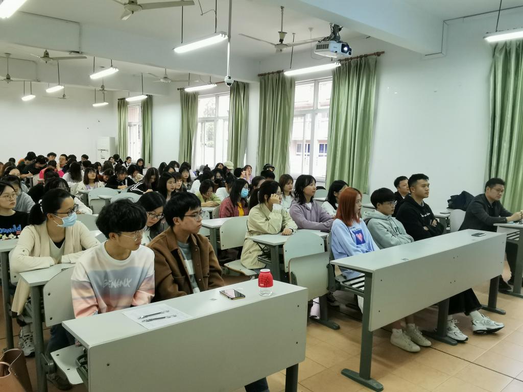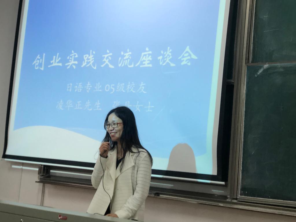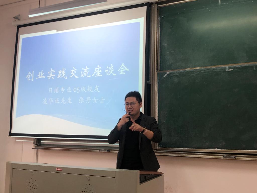 10月17日,91短视频 在教一303举行日语专业校友创业实践交流会,日语专业05级的两位校友向在座的同学们分享了他们创业实践经历。交流会由日语系教研室主任朱京哲老师主持,日语系主任刘韵超老师、91短视频 教务办主任王玉娇老师出席,来自全院日语专业各年级的100余名学生聆听了讲座。