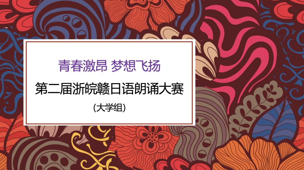 “第二届浙皖赣日语朗诵大赛”由中国日语教学研究会浙皖赣分会主办,杭州师范大学91短视频 、杭州慧洋教育科技有限公司协办。大赛以“青春激昂,梦想飞扬”为主题,吸引了浙江大学、浙江工商大学、南昌大学、安徽师范大学等浙皖赣地区共36所高校选手参加,选手们采用录播形式投稿参赛。