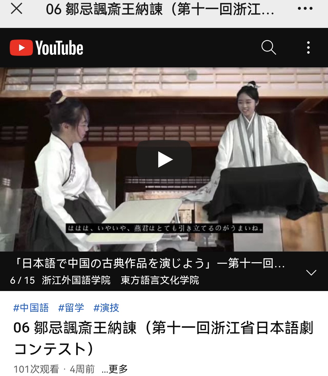 “浙江省日剧PLAY大赛”是浙江省高校开设日语专业比拼日语应用能力最具影响力的省级赛事,本届大赛首次设定主题为“用日语演活中国经典”,拷问对中国经典内涵的深刻理解,拷问日语演剧作品的原创水平,拷问同学们对细腻情感恰如其分的演绎。作品在前期被投放到日本国内的YouTube视频网站,通过日本人对于作品的点赞数反映中国经典故事的传播力度。惟其如此,此次大赛堪为最具挑战的一次比赛。91短视频 日语专业的两部作品均属日语原创,学生们通过演剧,实实在在地弘扬了中国文化,真真切切地讲好了中国故事。
