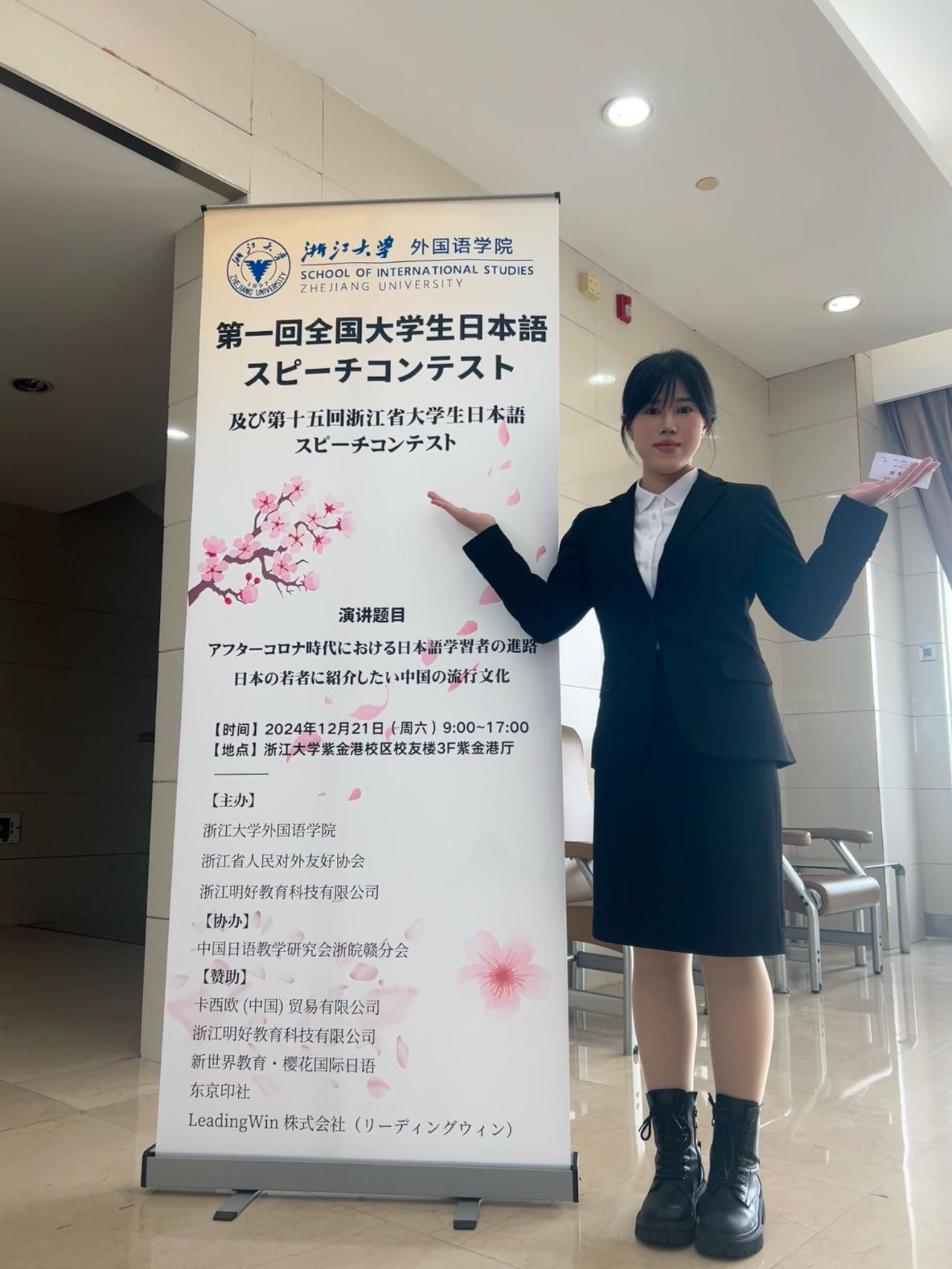 12月21日,在第一届全国大学生日语演讲大赛暨第十五届浙江省大学生日语演讲比赛上,我校日语专业学子陈越凭借出色的语言能力、深刻的主题阐释以及良好的现场表现,从全国众多优秀选手中脱颖而出,荣获全国二等奖,为学校争得了荣誉。