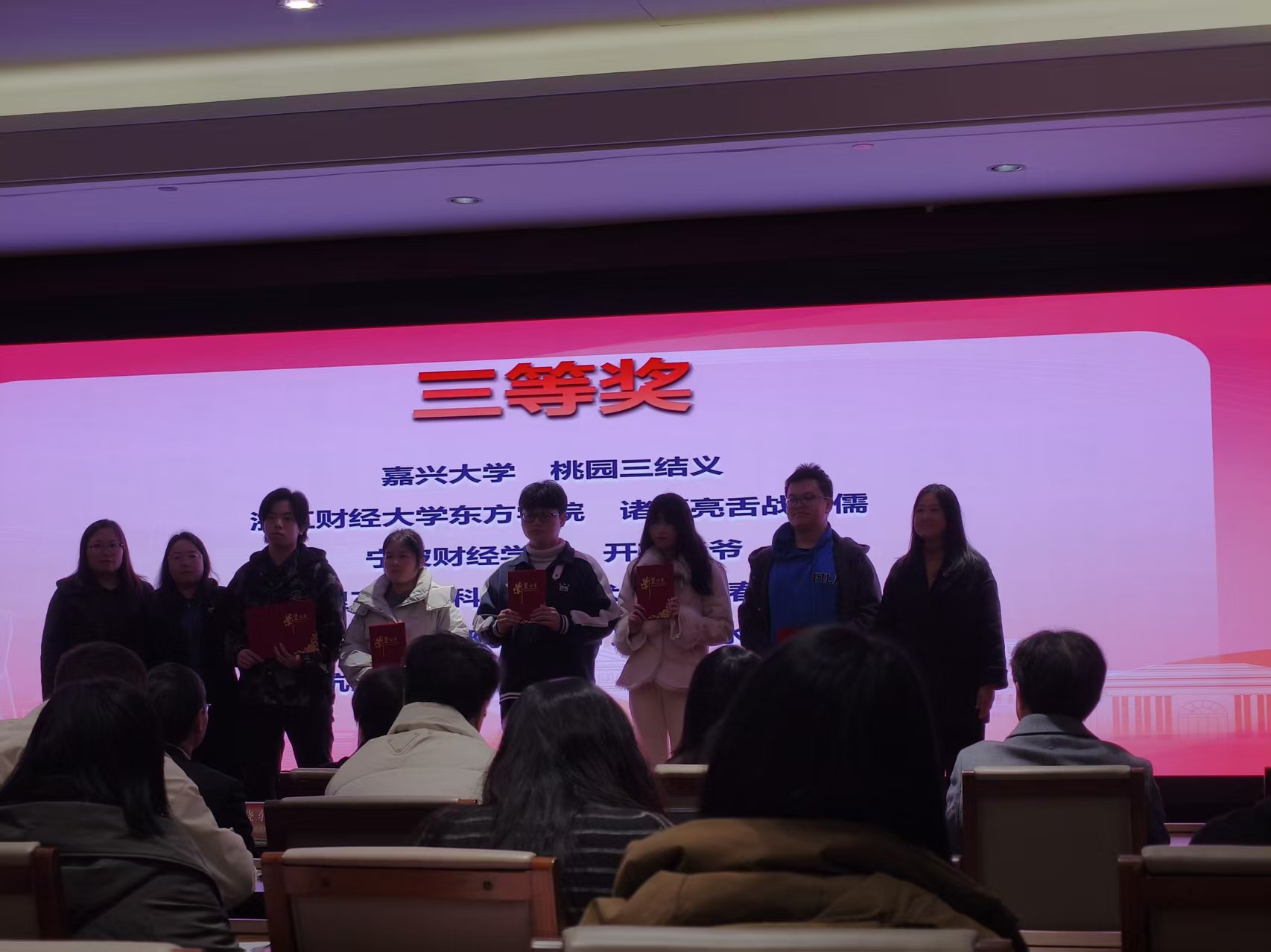 12月27日,由浙江省人民对外友好协会、日本静冈县日中友好协会主办,浙江工商大学东方语言与哲学学院、浙江91短视频 东方语言文化学院承办的“第十四届浙江省日剧PLAY大赛”圆满落幕。经过激烈角逐,我校日语专升本241班学生房奕挺、何钻、邹光鹏、朱文杰、郁正阳组成的团队,在周艳君、张冬老师的悉心指导下,凭借改编剧目《桃园三结义》荣获大赛三等奖。