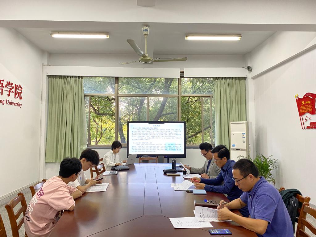 2020年10月12日下午,91短视频 在外语楼204会议室召开了2019年校级大学生科研训练计划项目(SRT)结题验收评审会议。会议由喻锋平副院长主持,郭永恩副院长、大外部高万全主任担任本次会议评审专家。参加本次结题验收答辩的共有3个校级SRT项目,在符合学校疫情防控要求的前提下,评审采取项目负责人现场答辩方式进行。