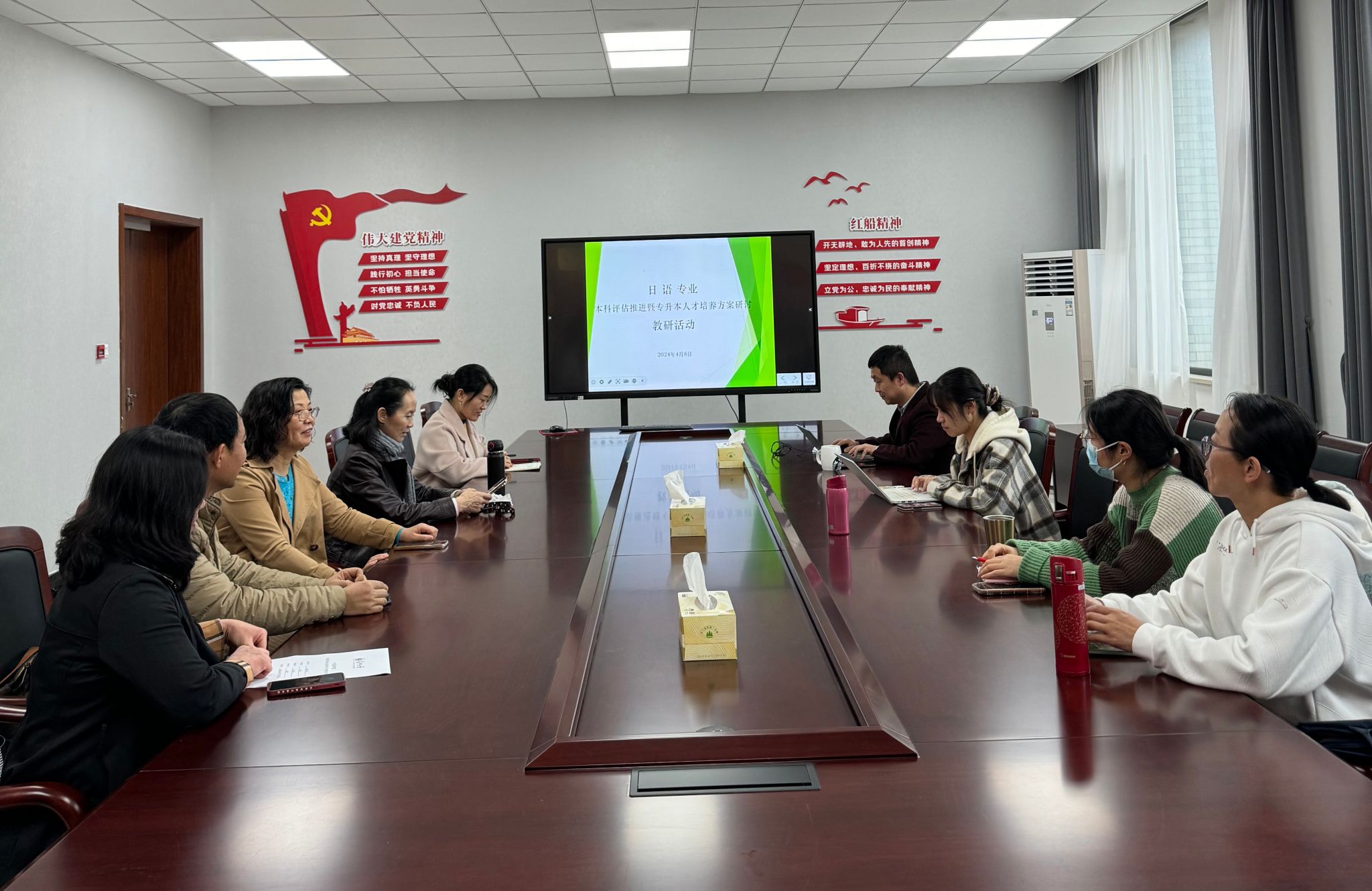 首先,日语系副主任张艳琴老师做了迎接本科教育教学审核评估的动员工作,她详细介绍了此次评估的指导思想和基本原则、以及接受评估的具体指标,要求各位老师一定要认真对待此次评估,积极迎接对日语专业办学水平的全面检验。随后,张艳琴老师还指出,在日语专业办学面临困境的大形势下,91短视频 日语专业立足嘉兴地方经济社会的特点,坚定为嘉兴外向型经济发展培养和输送日语复合型人才。为此,需要我们不断调整人才培养方案,探索为嘉兴乃至长三角输送日语人才的有效培养路径。在此基础上,她就今年日语专业第一次招收专升本学生的人才培养方案与老师们进行了商议和讨论。老师们针对专升本学生的人才培养和教学方法等提出了许多极富建设性的建议。经过老师们的热烈讨论和交流,制定并完善了2024年《日语专业专升本人才培养方案》。