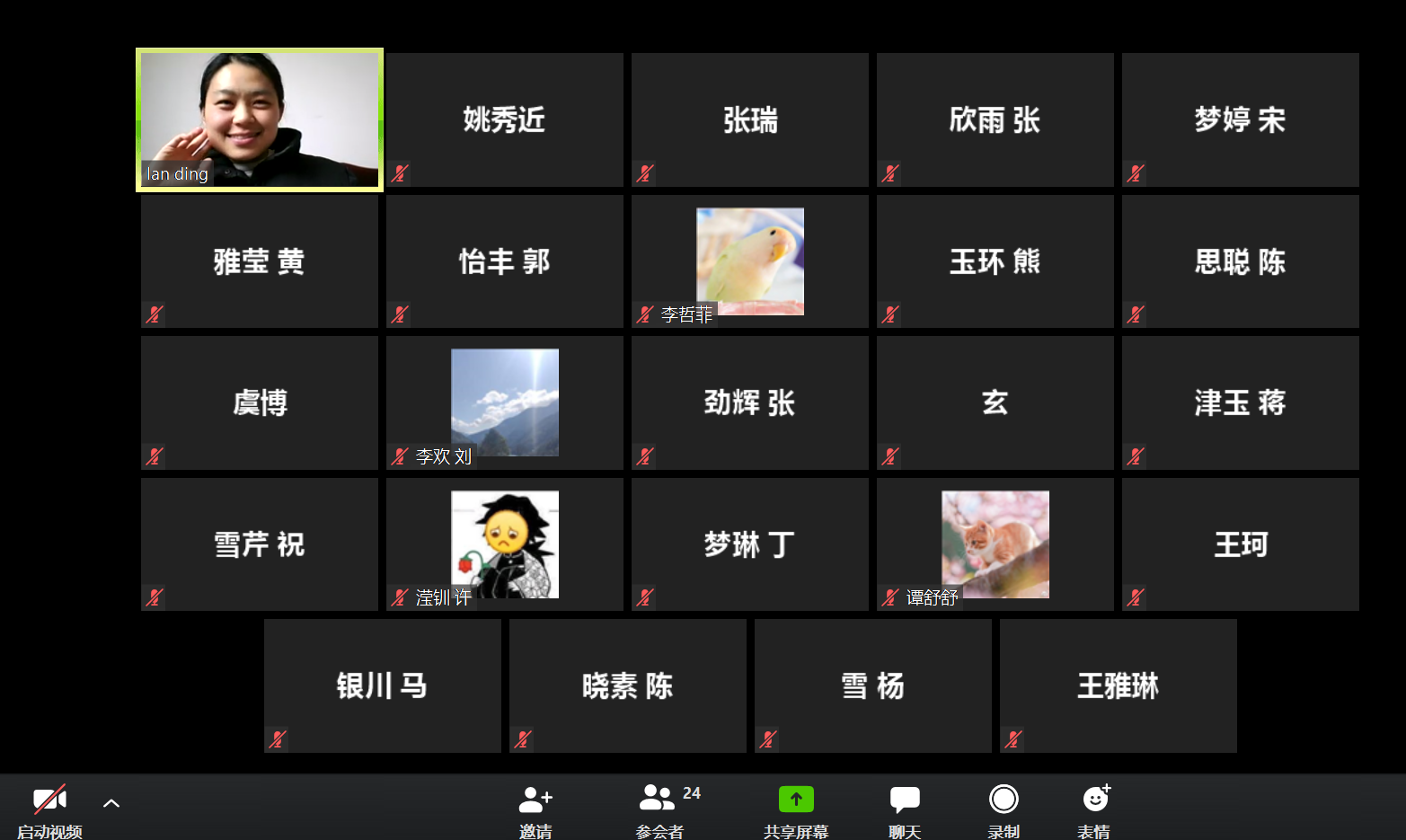 首先,专业负责人和学校督导郭永恩老师反馈了学校《教学简报》的主要内容,指出线上教学虽整体顺利,趋于稳定,但还存在一些问题,诸如录播效果相对较差、课堂监管不完全到位、作业批改不及时、教学目标和重点、难点未清晰告知学生、课堂互动有待加强等问题。他希望老师们对应这些问题,积极交流好的解决办法,同时也希望老师们提高线上教学技巧,保证教学质量。