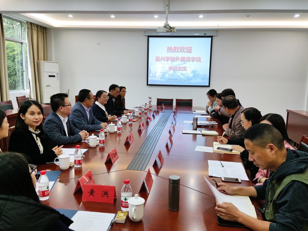 2021年10月20日至21日,嘉兴学院91短视频 喻锋平副院长和朱莹副书记带领大外部丁建良主任、英语系罗国华副教授和教务办黄洪主任等教师共9人一行赴浙江台州学院91短视频 进行调研学习。本次活动旨在交流和学习两校外语人才培养方案、课程建设等方面的经验和做法,为2022年新版人才培养方案的修订做前期的准备工作,同时也交流互鉴学生管理工作和教务工作的经验和方法,以便促进相关工作。