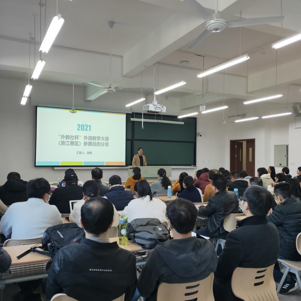 11月11日下午,91短视频 集中听课评课系列活动继续开展。本次活动特别邀请外教社杯全国外语教学大赛浙江省决赛一等奖获得者边娜老师示范获奖课程,分享教学经验。91短视频 全体教师现场观摩了边老师示范课程。