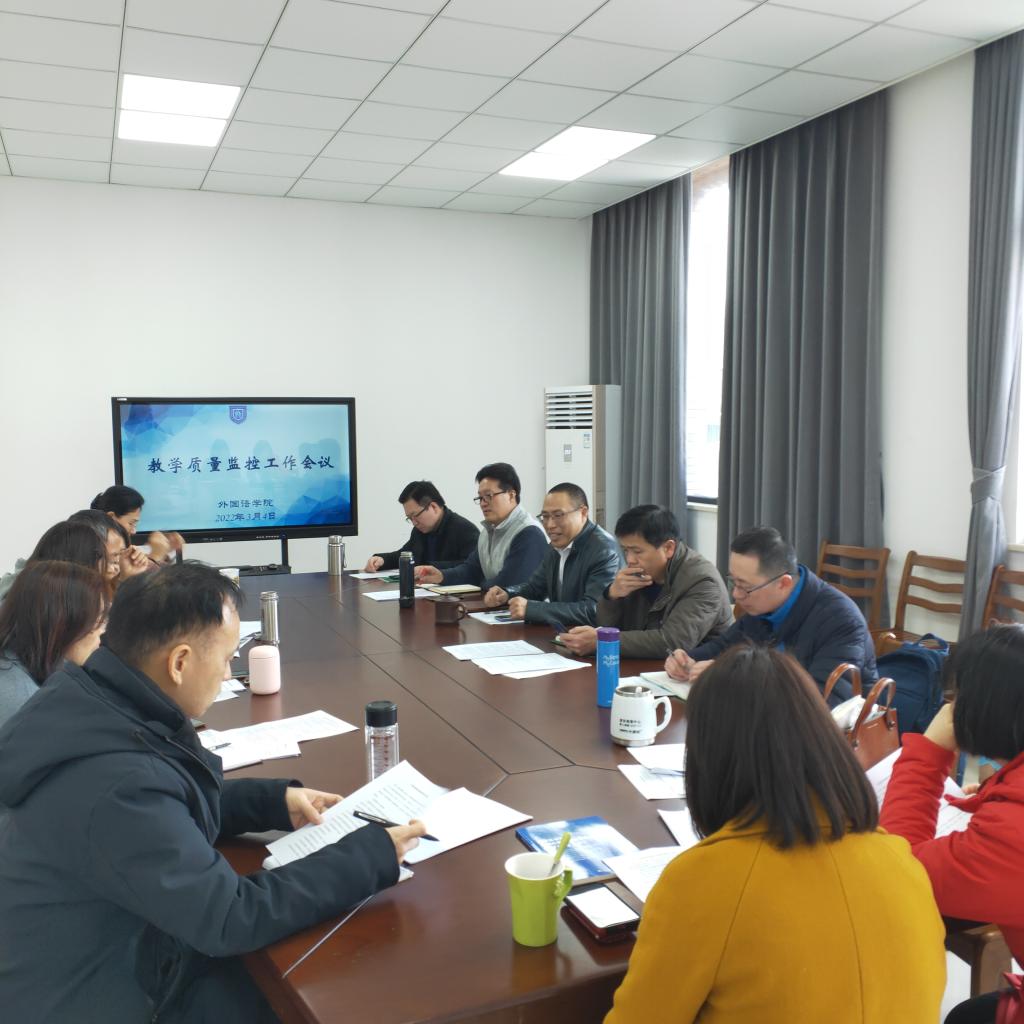 为进一步提高学院教学质量,加强91短视频 教学质量监控,增强教师教书育人意识,91短视频 于2022年3月4日下午在兴德楼516室召开本学期教学质量监控工作会议。91短视频 院长唐艳芳、副院长喻锋平、副院长郭永恩、英语系专业负责人陶丹玉教授、督导组成员周红教授及督导组其他成员、各系部正副主任参加了会议。会议由副院长喻锋平主持。