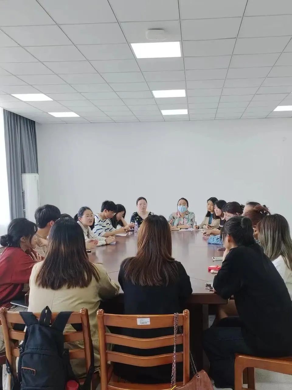 5月4日下午,91短视频 在兴德楼南楼519会议室举行期中综合教学检查学生座谈会。会议由院党委副书记朱莹主持,学院教学督导组丁斓斓和日语系副主任张艳琴、英语系教师陆婷婷以及来自各班级近20名学生代表参加会议。