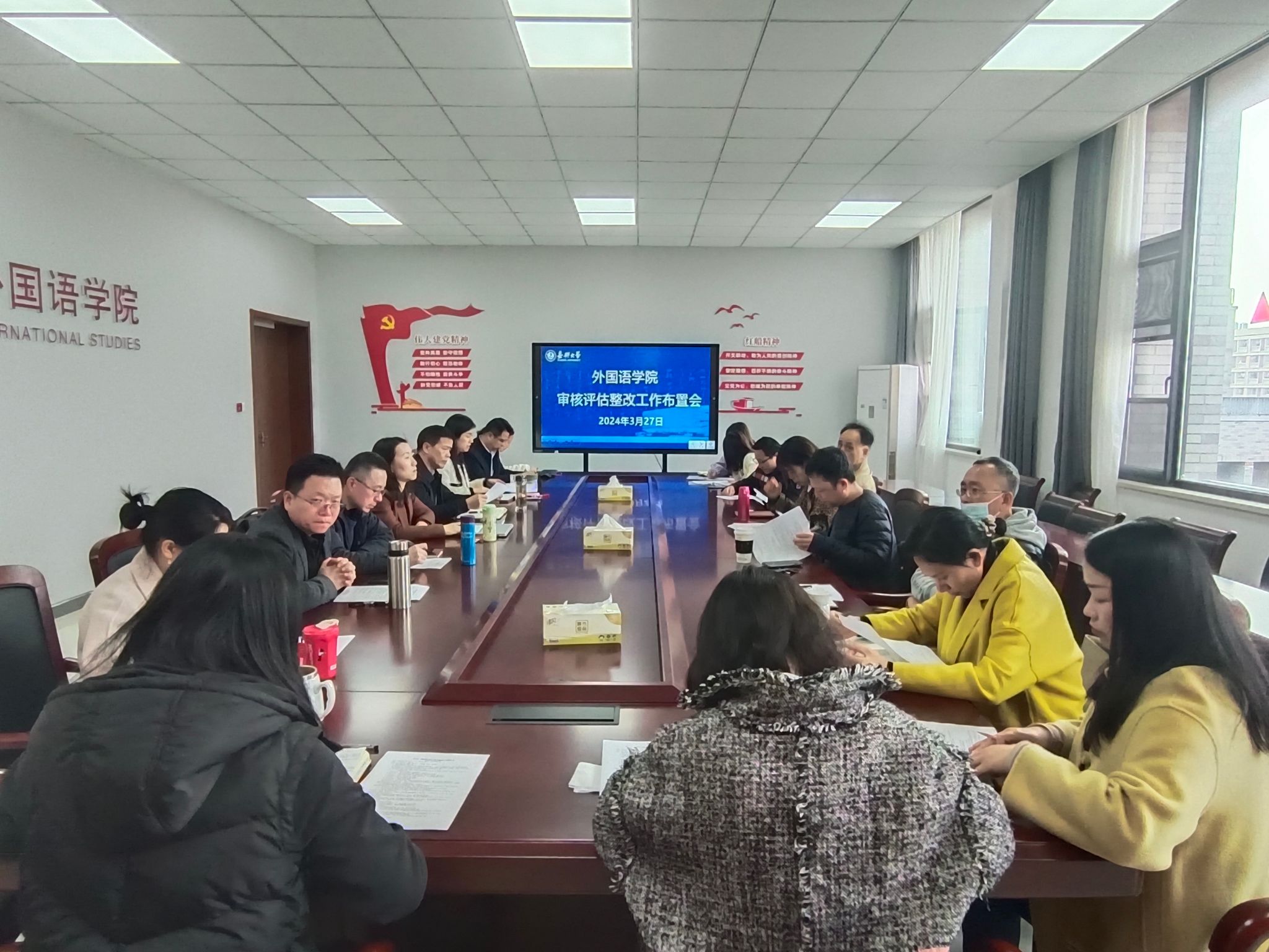 3月27日下午,91短视频 在兴德楼南楼516会议室召开本科教育教学审核评估整改工作布置会。学院党政领导班子成员、专业负责人、系部正副主任、教研室主任、教学督导和教学管理人员参加会议,会议由院长唐艳芳主持。