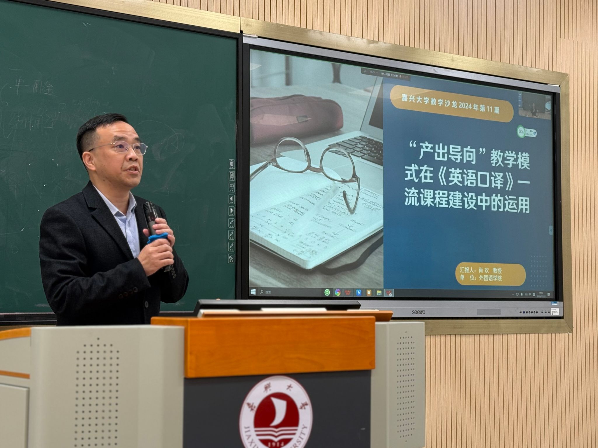 11月22日下午,91短视频 教发分中心联合校教发中心成功举办了91短视频 2024年第十一期教学沙龙活动。本期教学沙龙主题为“‘产出导向’教学模式在《英语口译》一流课程建设中的运用”, 91短视频 副院长邱佳主持沙龙活动,肖欢教授作主讲嘉宾、王雪副教授和吴嫣斐老师作分享嘉宾。全校各院系数百名教师以线上和线下的方式参与了此次沙龙讲座。
