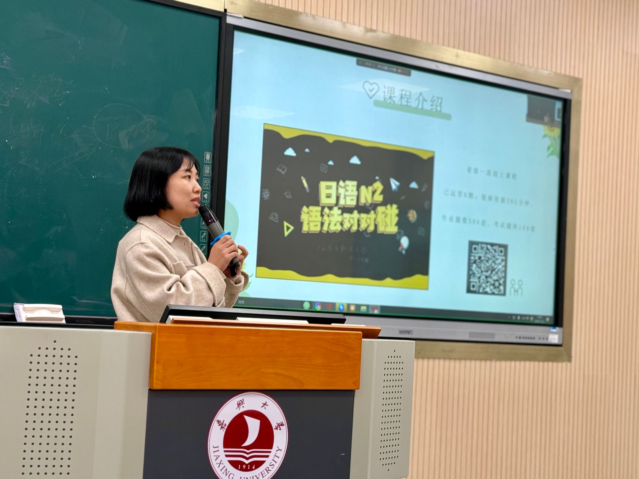 王雪副教授以“应需求、求实效:线上一流课程的实施与反思”为题,介绍团队的特色课程《日语N2语法对对碰》,并从课程背景、师资团队、课程目标、教学设计和教学反思五个方面分享课程的建设历程。尤其是在教学设计环节,王老师重点分享对色彩鲜艳度和趣味驱动、专注力的关注与应用,活泼、简洁、高效的课程风格,模块化的课程结构、实时的互动设计、有效的激励机制和反馈机制,极大地提升学生的参与感并促进学生主动思考和积极参与。