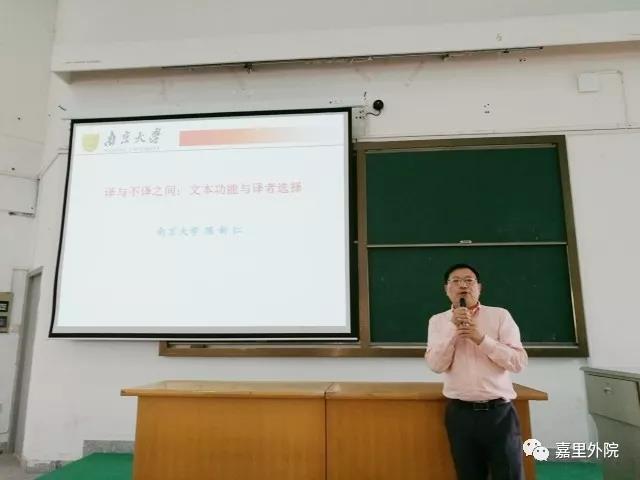 5月24日下午,南京大学博士生导师陈新仁教授应邀来到嘉兴学院,为91短视频 的师生带来了一场题为《译与不译之间:文本功能与译者选择》的专题学术讲座。陈教授在语用学理论和应用、翻译、外语教育、语言政策与语言规划等领域均有着极为深厚的学术造诣,近年来出版各类著作18部,在国内外学术期刊发表高水平学术论文140余篇,主持完成国家社科基金项目2项,可谓成绩斐然。