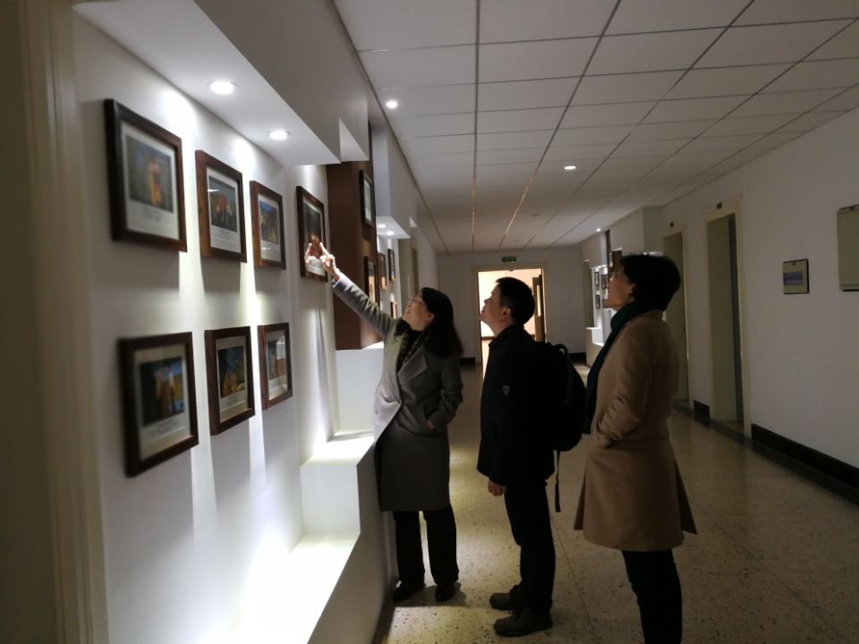 柴院长向交流学习的领导和老师们介绍“莎士比亚”作品长廊