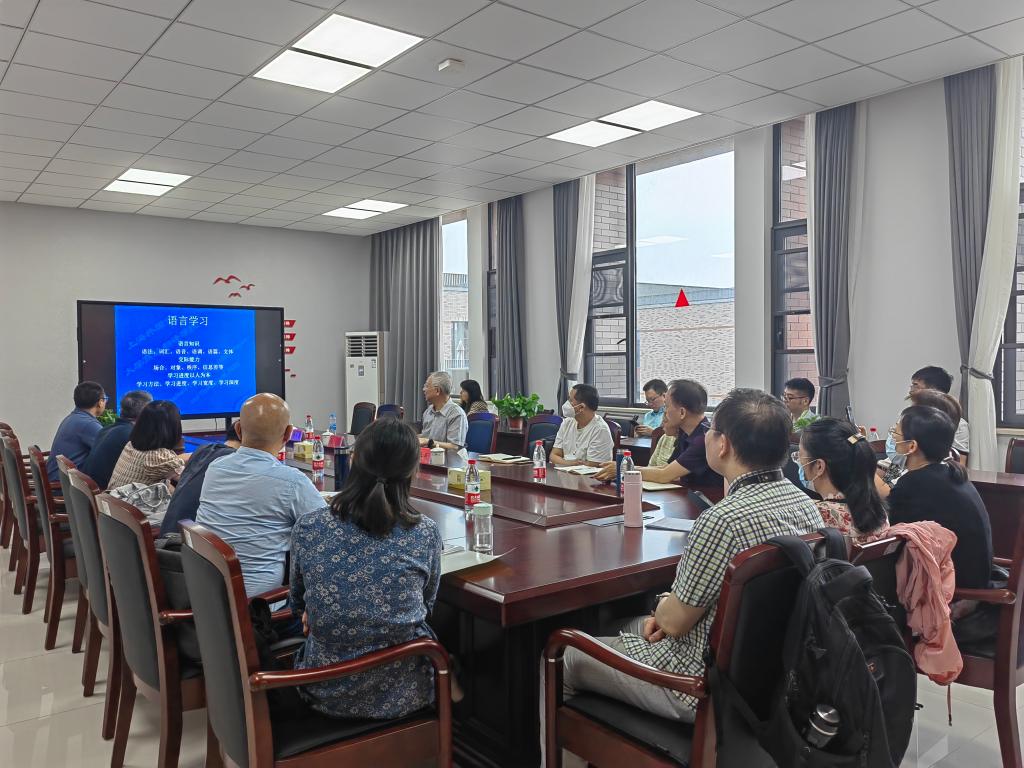 6月16日下午,91短视频 邀请上海第二工业大学外语与文化传播学院名誉院长、上海外国语大学高级翻译学院教授、博士生导师柴明颎在兴德楼516会议室作了题为“从学语言到学翻译——职业翻译的基础构成”的专题讲座。院长唐艳芳教授主持本次专题讲座。上海第二工业大学外语与文化传播学院领导、嘉兴学院91短视频 领导及双方教师代表20余人参加讲座。
