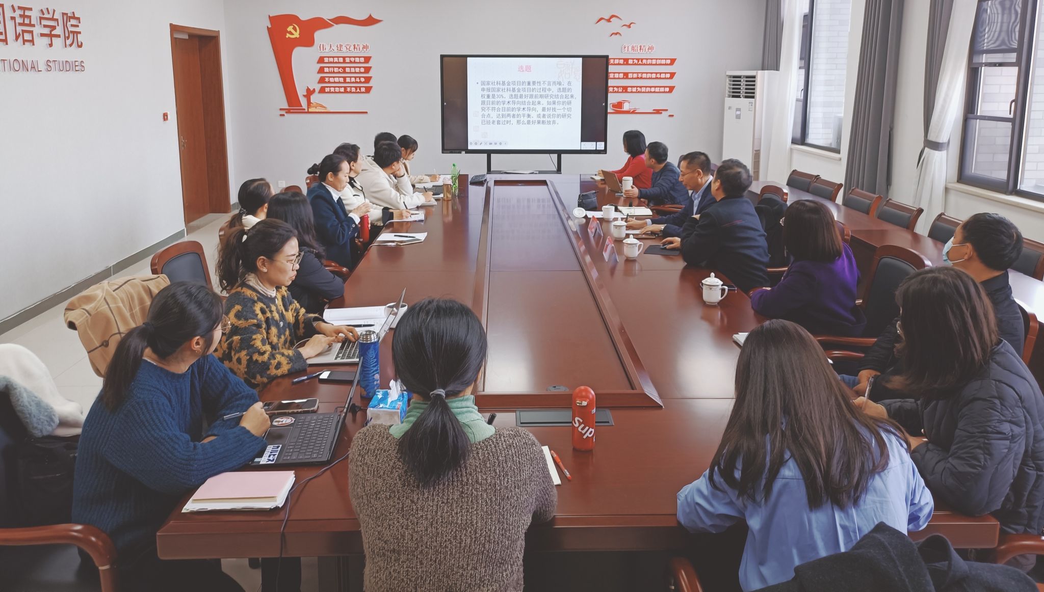 11月30日,浙大宁波理工学院日语学科带头人李先瑞教授和宁波大学日本研究所所长李广志副教授莅临91短视频 ,分别以“日本女性文学解读——从日本的女性主义文学批评视角”和“日语相关研究课题申报对策与方法”为题,针对日语专业教师的科研提升和课题申报做了两场学术讲座。讲座由91短视频 副院长、日语专业负责人郭永恩教授主持,日语专业全体老师参加。