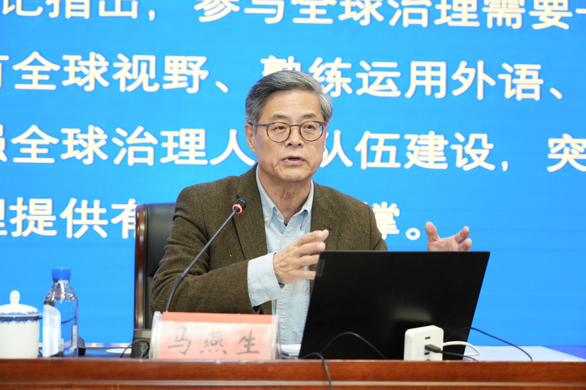 在互动环节,马燕生就师生提出的全球胜任力培养途径、跨文化交际实践等问题作了细致解答。
