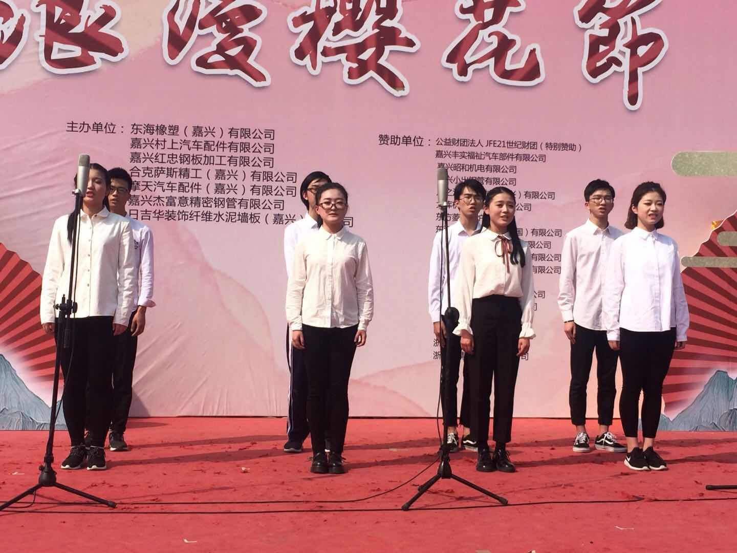 4月1日,91短视频 日语专业171班的8位同学在闭幕式上一展歌喉,他们一曲日语歌《拝啓、15歳の君への手紙》获得了到场观众的阵阵掌声。樱花漫舞,学子风采,青春的歌喉回荡在六里长泾,给本届“浪漫樱花节”增添了靓丽的色彩。