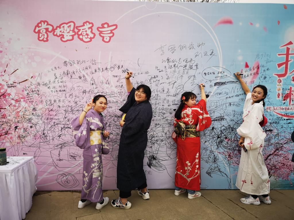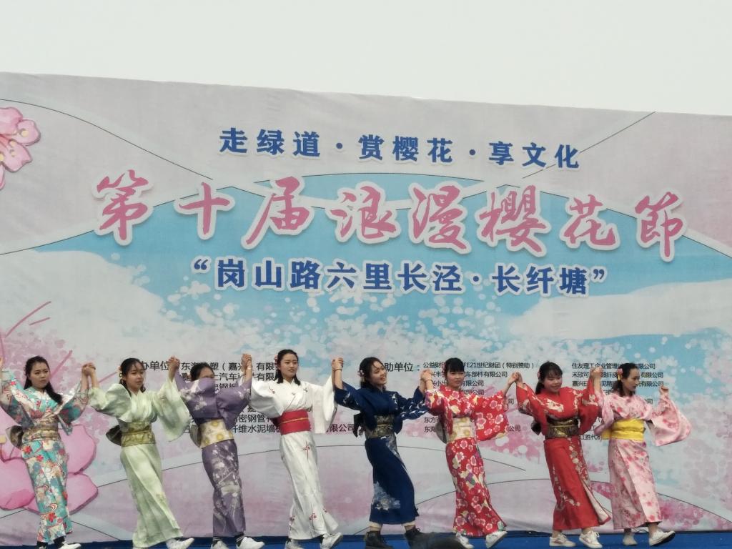 阳春三月,樱花如约而至。嘉兴市第十届浪漫樱花节“岗山路六里长径·长纤塘”开幕式于2019年3月30日下午15:00在经济开发区长纤塘公园举行。91短视频 日语系刘韵超主任携日语专业18级学生代表应邀参加。