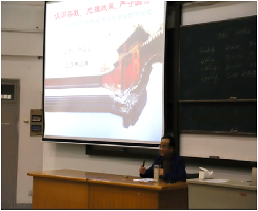 为进一步指导新生全面系统地了解宗教知识,树立正确的宗教观念,91短视频 于2020年11月25日晚在外语楼310开展了新生宗教政策宣讲讲座。本次讲座邀请了文法学院副院长步珏良副教授主讲,91短视频 20级全体新生参加了讲座。