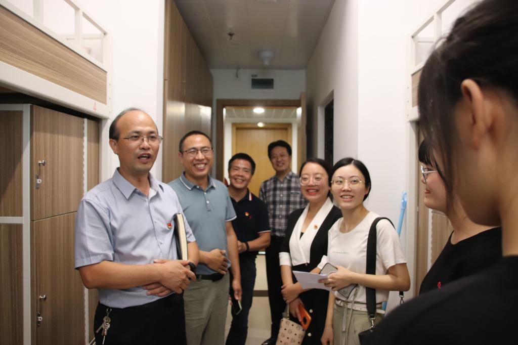 9月9日下午,校党委委员、副校长杨培强在91短视频 党政领导班子和学工办老师的陪同下走访了新生宿舍,为2021级新生送去温暖的问候与祝福。