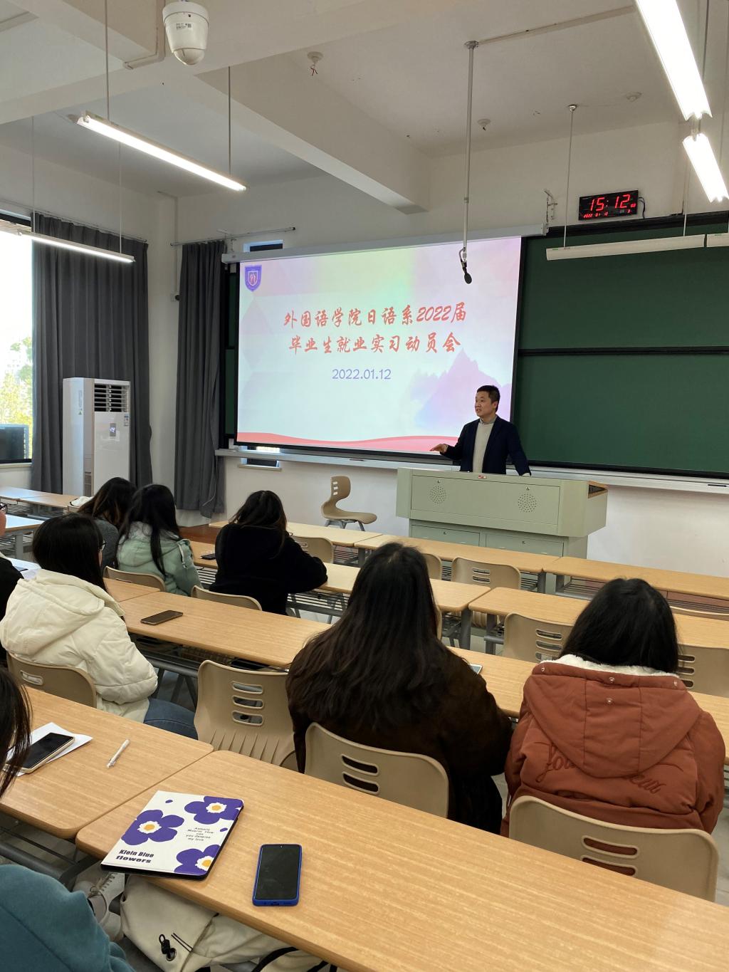 早在今年的1月份,91短视频 就分专业召开了2022届毕业生就业实习动员大会,为做好今年的就业工作奠定了基础。学院党委副书记朱莹、英语系系主任邱佳、日语系系主任刘韵超参加了会议,对学生就业进行了精心规划和指导。