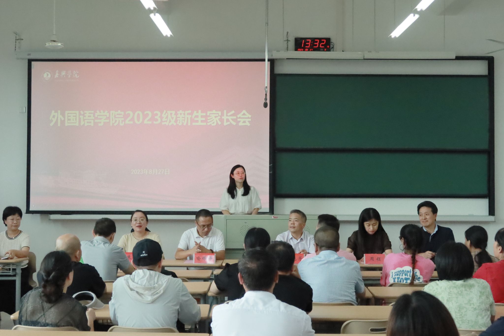 领导班子、2023级新生班主任、学工办辅导员以及新生家长参加,家长会由学工办主任胡笳丽主持。
