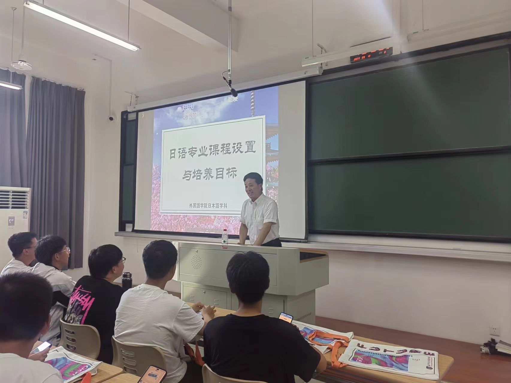秋风拂桂树,香薰飘梁林。9月10号的教师节下午,日语系在兴德楼126教室举办了日语专业教师和2023级新生的见面会,见面会由日语系副主任张艳琴主持,专业负责人郭永恩、教研室主任王雪、韩语方向负责人朱京哲和对日商贸方向负责人董旭阳五位老师出席了见面会。