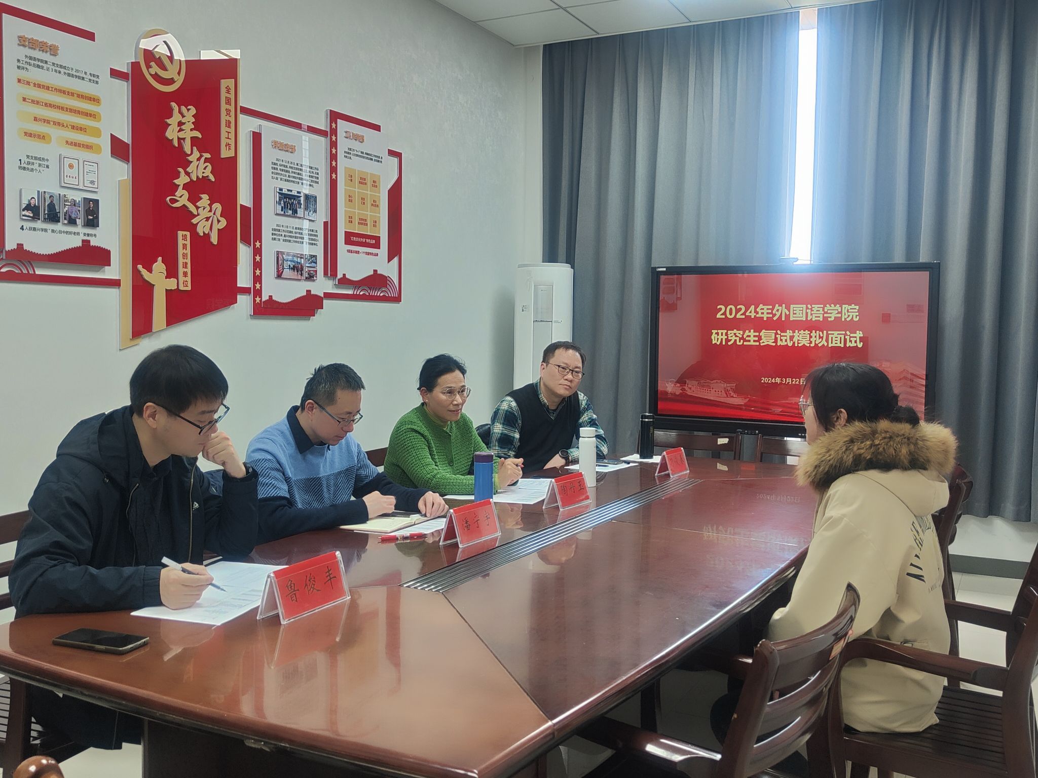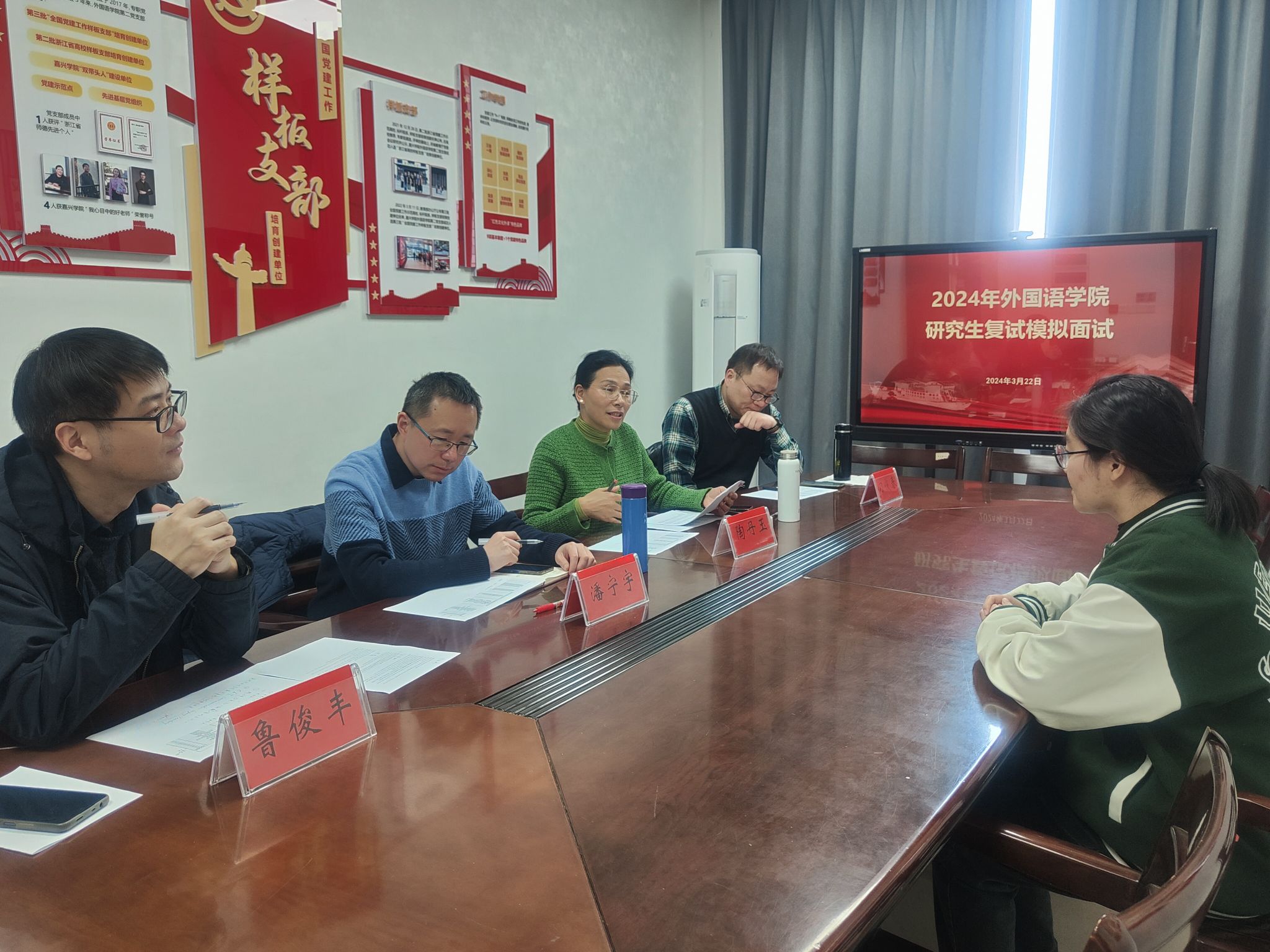 为助力考研学子充分做好复试准备,体验真实的面试场景,提升面试技能,3月22日中午12点半,91短视频 在兴德楼南楼521会议室举办2024届外语专业学生考研模拟复试。由学院教师陶丹玉、潘宁宇、鲁俊丰、刁俊春担任面试官,12名同学参加本次模拟复试。