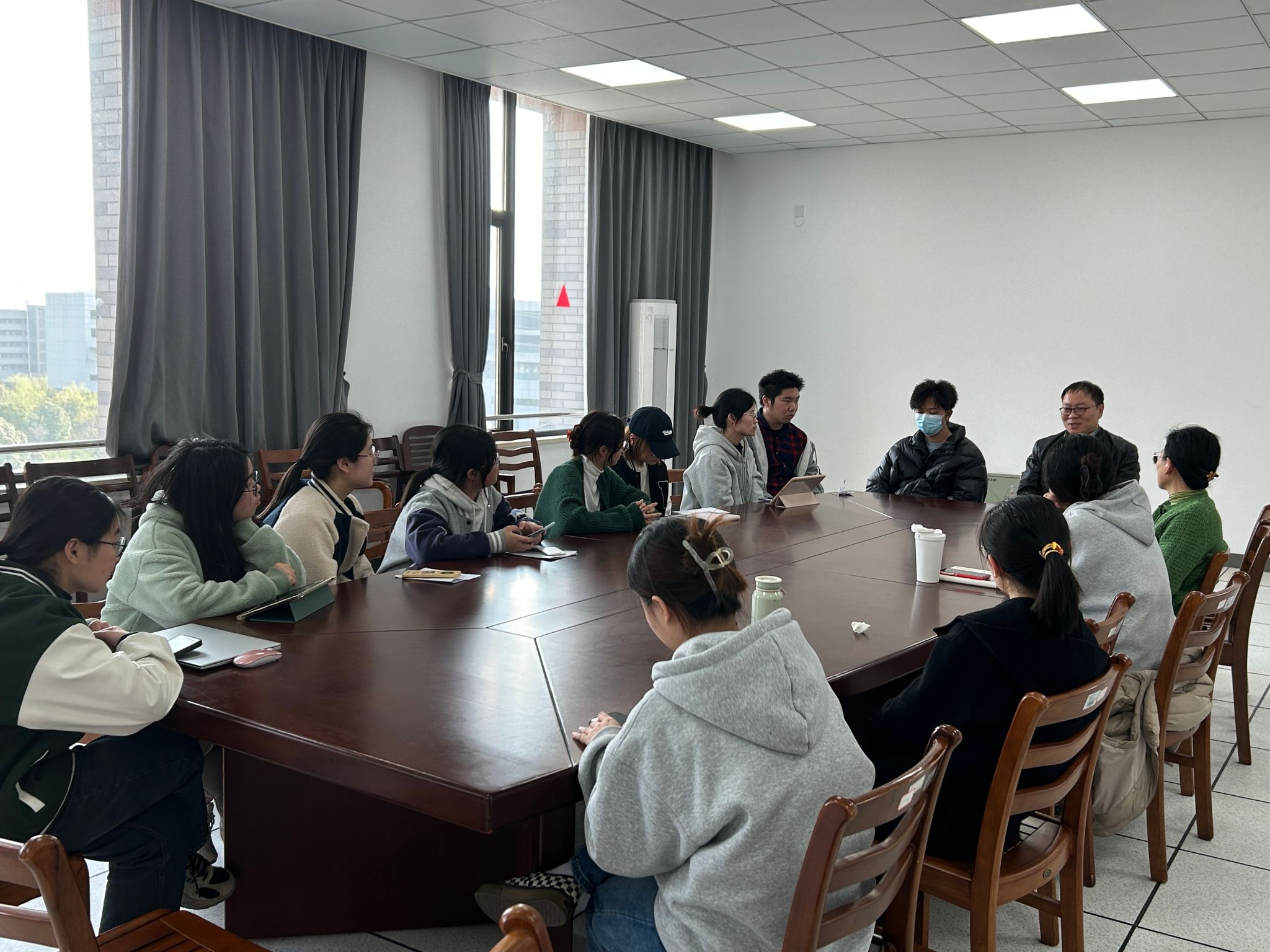 模拟复试结束后,老师同学们开展交流分享,发表了自己的意见与感受。刁俊春向同学们提供了面试技巧,比如快速克服紧张的方法、应试的基本礼仪和临场表达等。
