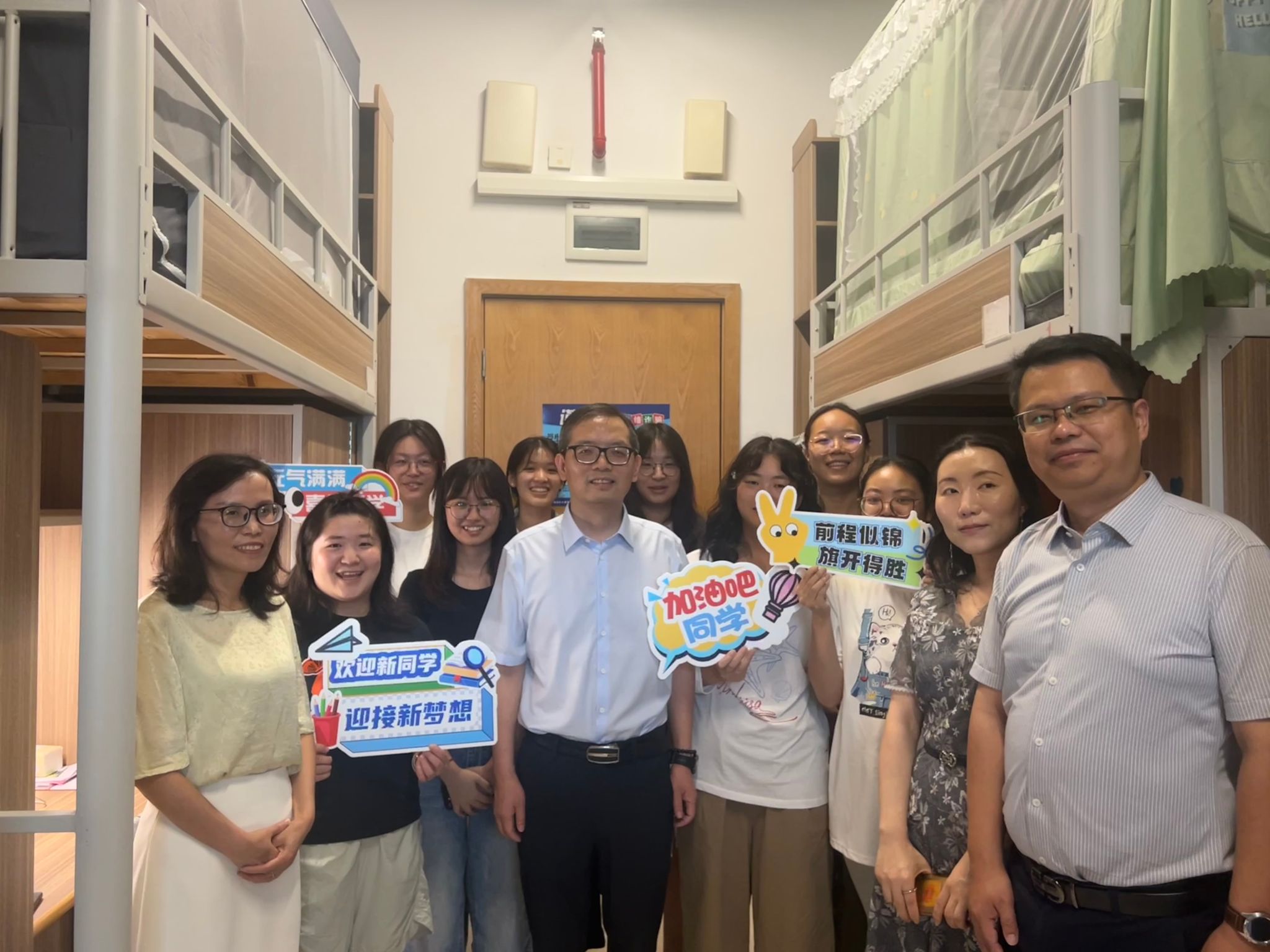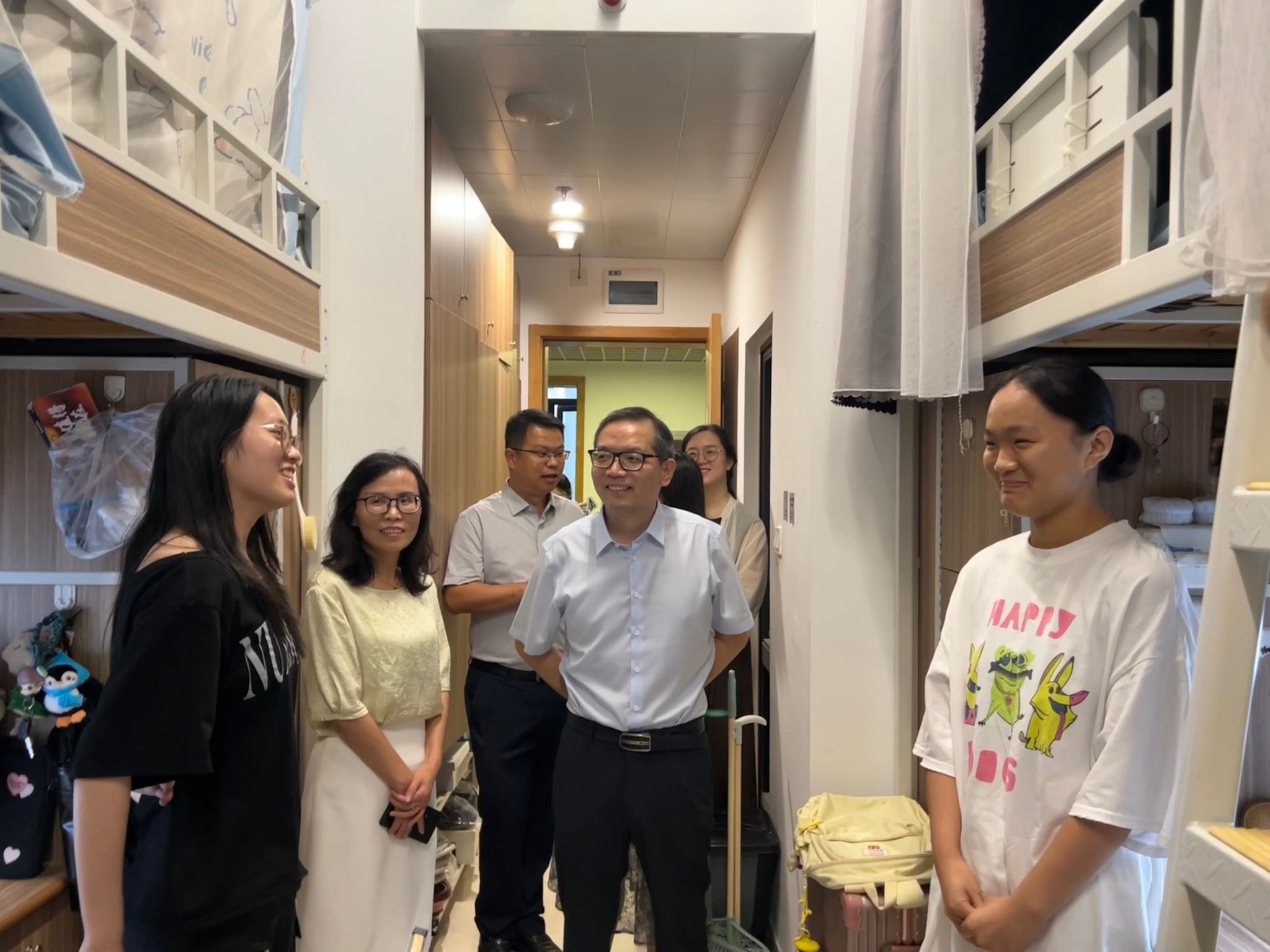 9月18日下午,副校长周宏伟走访91短视频 学生寝室,看望首届翻译硕士研究生新生、结对寝室同学,实地了解学生生活与学习情况,传递学校关怀。学院党政领导班子随同走访。