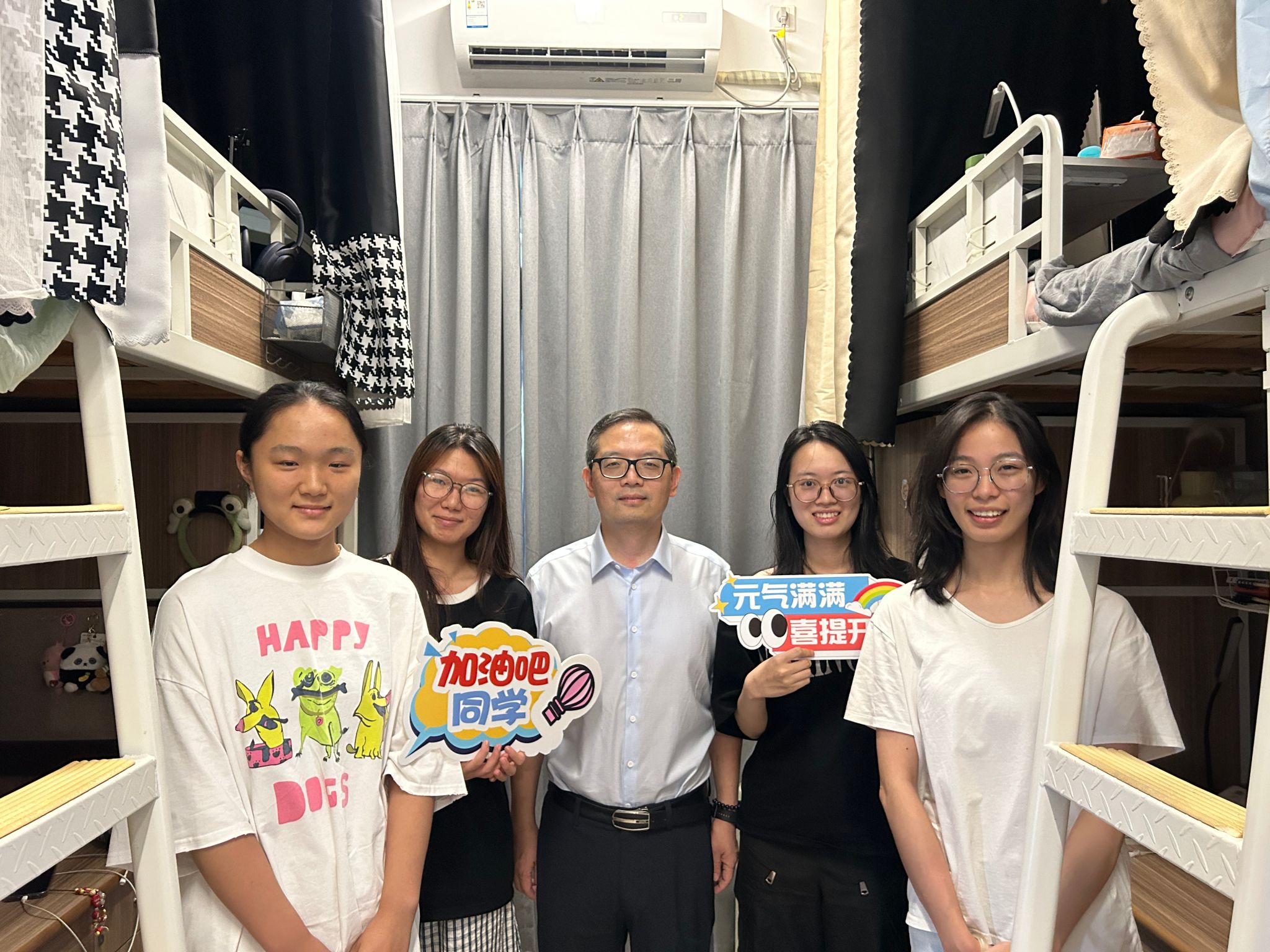 在结对学生寝室,周宏伟关切地询问了同学们的暑期见闻、新学期规划和毕业方向,并就学业发展、职业规划、大三生活等话题与同学们进行了轻松而深入的交流。他在聆听了同学们的想法与困惑后,勉励同学们在承前启后的关键大三学年,要明确目标、脚踏实地,既要深耕专业,也要拓展综合素质,不断提升核心竞争力。