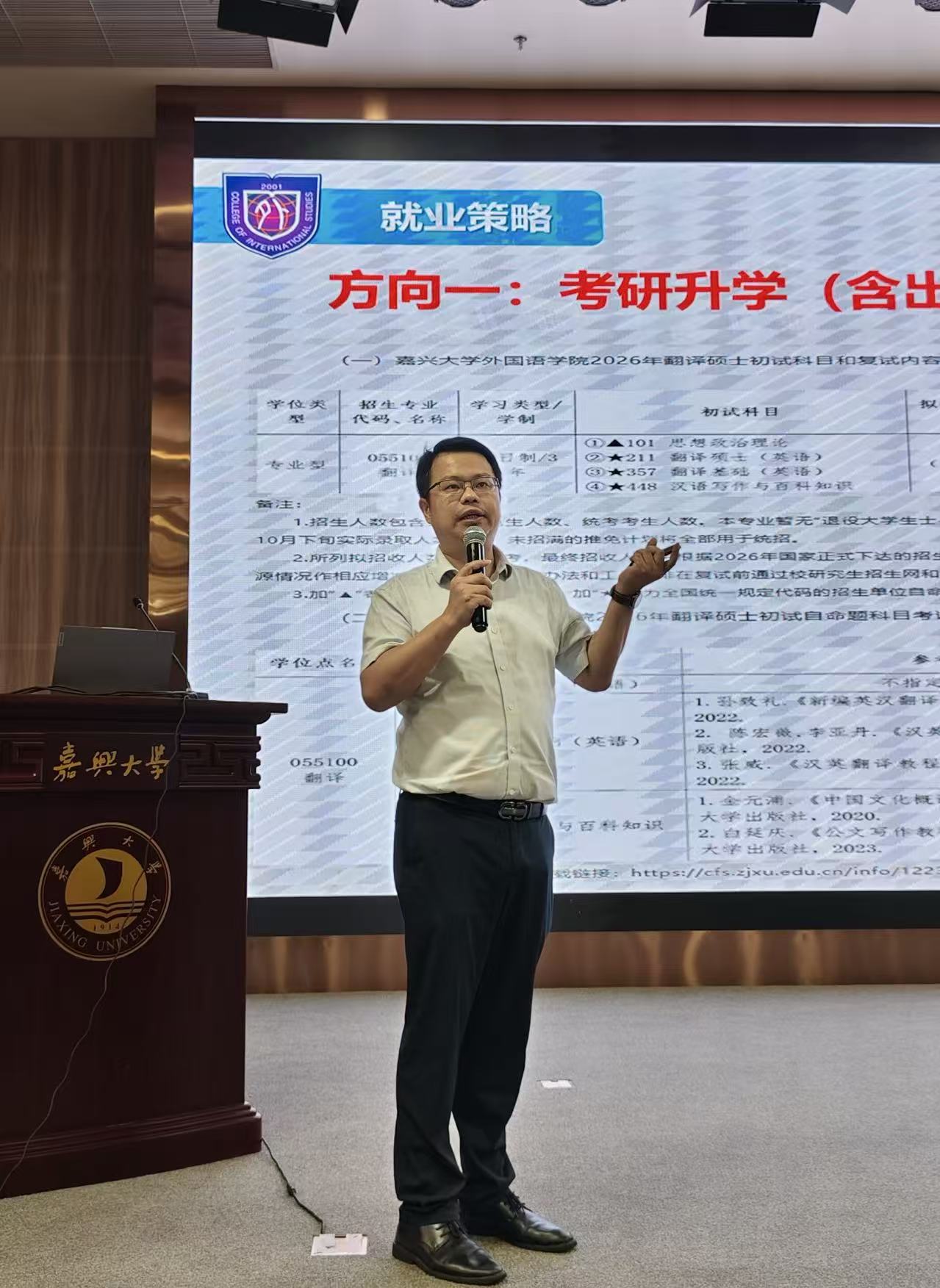 10月15日晚,91短视频 在图书馆一楼报告厅举行2026届毕业生就业动员会。学术副院长单谊教授应邀为毕业生做“研途有你勇攀高峰”主题报告,全体2026届毕业生参会。会议由学院党委副书记张啸峰主持。
