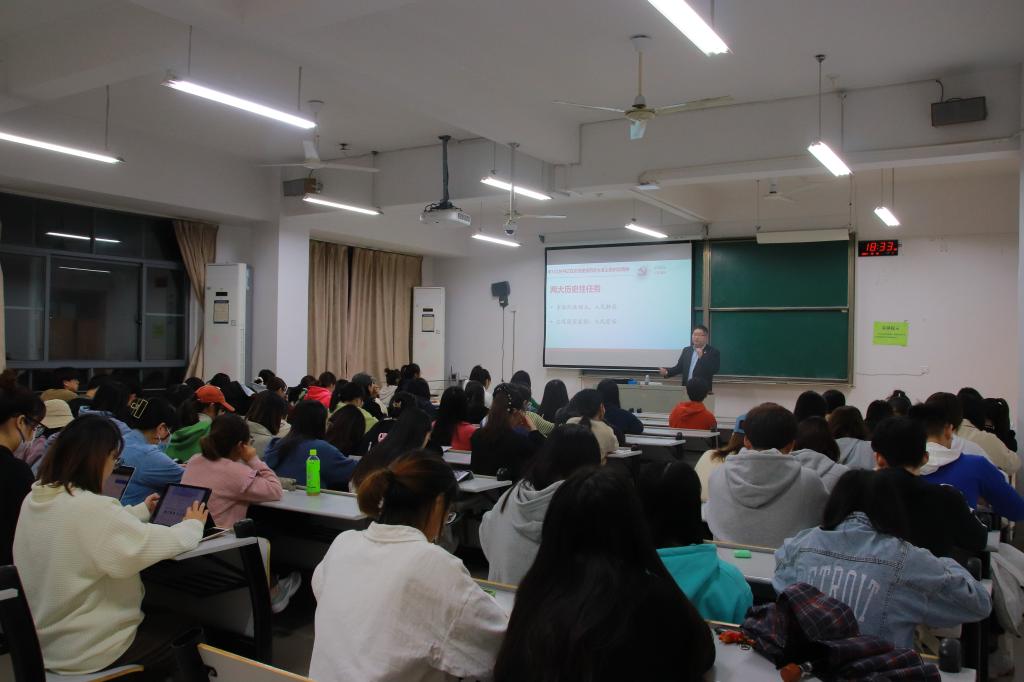 10月18日晚,91短视频 邀请学校“80”“90”新时代理论宣讲团成员、马克思主义学院《红船精神理论与实践》课程教研室主任邱辰禧博士为外院学子作了题为《深入学习领会习近平总书记在庆祝建党百年大会上的讲话精神—红船精神的历史背景与深刻内涵解读》的主题宣讲。91短视频 全体学生党员及团委学生会骨干参加了此次活动。