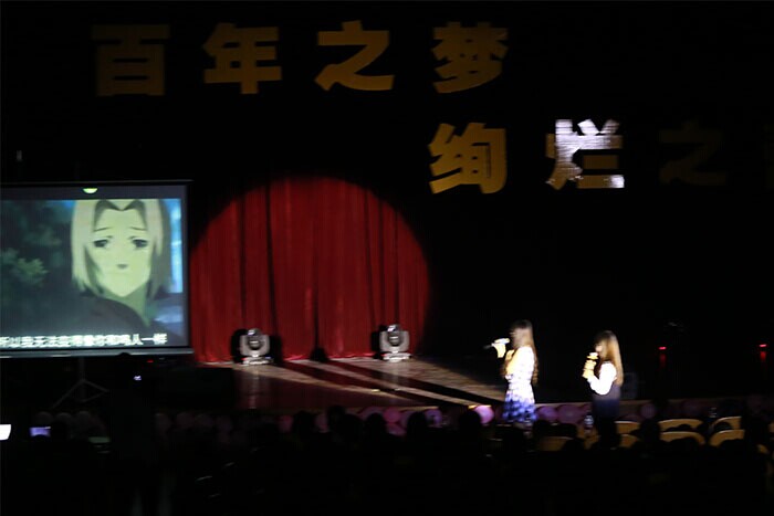 本次展示在主持工作副院长陶丹玉教授的英文致辞中拉开序幕,以极具想象力的“爱丽丝梦游仙境”为线索,讲述了初入大学的爱丽丝一步步领略大学生活的绚烂多彩,从不安到兴奋,再到自信的心路历程。并将91短视频 的特色项目——外语风采大赛中的外语配音、外语朗诵、外语歌曲和外语演讲等项目的获奖作品呈现于舞台之上,汇聚了高年级同学在英语、日语、韩语、法语的专业学习成果。同学们扎实的专业基础和良好的语言表现力,震撼了全场新生,掌声不断,成为91短视频 新生始业教育的精彩一课。当观赏完精彩的日语、英语动画配音后,现场即时播放的微信墙出现同学们的观赏感悟:“突然对学好日语有种强烈的愿望”、“台上学长学姐们流利的口语让我信心百倍”。