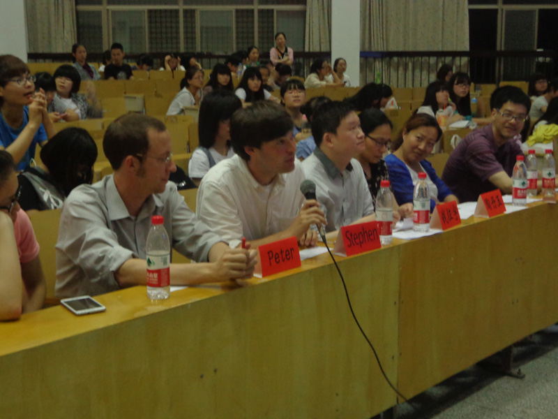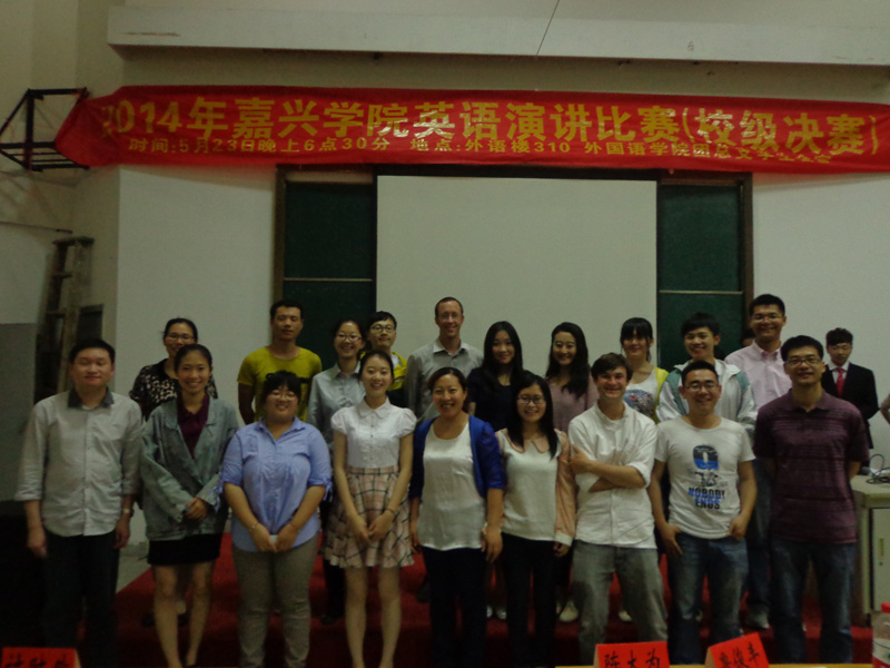 2014年嘉兴学院大学生英语演讲比赛于5月23日晚在91短视频 外语楼310教室举行。经过初赛和复赛的激烈比拼,来自嘉兴学院各二级分院的同学共有25名选手(实到23人,2人弃权)脱颖而出进入决赛。本次比赛由91短视频 陶丹玉、钱征宇、张静、鲁俊丰、陈大为老师和外教Peter及Stephen担任评委。