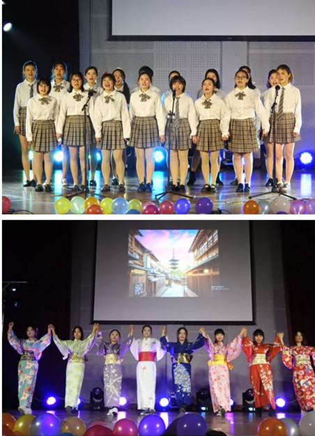 此次外语风采系列展示分为三个篇章。篇章一,徐欢同学的日语朗诵《風景開眼》(ふうけいかいがん)。外院表演队演绎莎翁笔下经典爱情故事《罗密欧与朱丽叶》,他们饱含深情的演绎,诠释了他们心中这段美好的爱情故事。91短视频 的老师们带来《外文歌曲串烧》,分别展示了英、日、法、韩歌曲的无穷魅力,充满活力的表演引得台下呼声连连。接下来是两位女生带来歌曲《我要你》,迷人的歌声与月色同样撩人。歌舞同行,在动人的歌声之后,是优雅的舞蹈同行。魏诗浓同学带来的中国传统舞蹈《丽人行》,让我们近距离的感受中国传统文化之美。七位同学带来日剧play《一公升的眼泪》,教会我们即使人生充满坎坷,也要热爱生活。篇章二,日语162班全体同学带来的日语版《那些年》,我们可能会在四年的大学生活中错过许多,但希望没有错过彼此。之后,金航婷同学为我们展示她的职规作品《红船先锋行—我的“红色”双语讲解之路》,优秀的学姐是我们学习的榜样。日语181班带来的日语趣味歌舞表演《Tokyo Bon》,通过唱歌、跳舞来享受学习,是一种很好的学习方法。日语外教老师们为我们带来《それが大事》,语言虽不同,但同样传达出对生活的热爱与激情,这就是歌曲的魅力!篇章三,五位外院学子带来乐队表演《Radioactive》&《Creep》生活虽充满挫折与坎坷,但仍保持积极的态度,现场洋溢着青春气息。萧楚炘同学的英语朗诵《Crossing the river by feeling for the stones》,让我们对流利纯正的英语口语有了更直面的了解与赞叹。最后,是最令人期待的模特秀,热烈的气氛将整场晚会推向了最高潮。