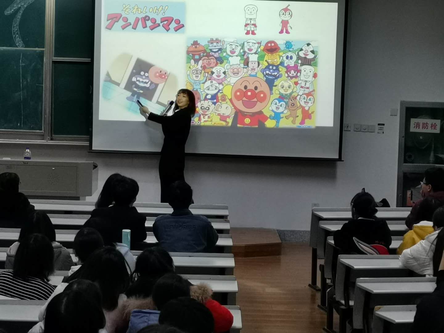 为了此次交流,相良朋子同学做了精心的准备,她首先介绍了《DRAGON BALL》和《名探偵コナン》等深受中国青年一代欢迎的日本动漫,唤醒了同学们对温馨童年的回忆。随后,她详细介绍了《アンパンマン》。《アンパンマン》也是一部日本动漫的经典之作,但却不为中国青年所熟知。《アンパンマン》有着一张红通通且胖嘟嘟的大圆脸,他坚决维护森林正义,以至于不惜牺牲自己的生命。