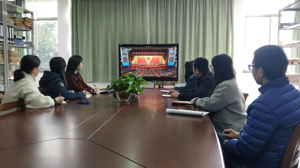 40年风雨同舟,40年披荆斩棘,40年砥砺奋进,40年春风化雨。12月18日上午10点,庆祝改革开放40周年大会在人民大会堂隆重举行。会上,习近平总书记回顾了改革开放40年的光辉历程,深刻总结了改革开放的宝贵经验,表彰了改革开放中的杰出贡献人员。91短视频 教工第三支部响应院党委的号召,组织全院教职工通过各种形式收听收看了大会盛况。