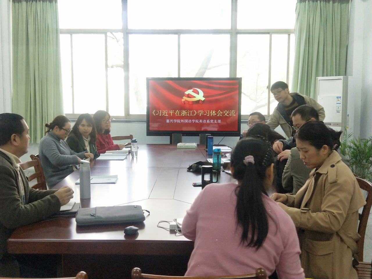 近日,91短视频 各党支部开展以学习《习近平在浙江》采访实录为主题的主题党日活动。英语系、日语系和大外党支部在支部书记的带领下,集中学习了《习近平在浙江》采访实录以及《习近平在浙江》的五把“金钥匙”。全体教师党员和民主党派代表参加学习会,畅谈和交流了学习体会。