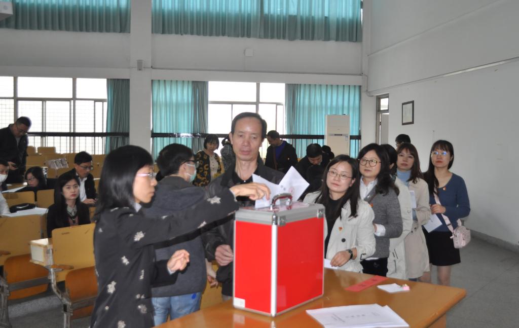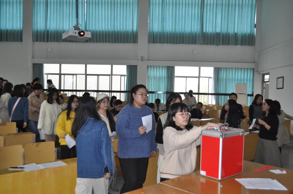 11月5日中午,91短视频 党委在外语楼204会议室召开党员大会,选举产生出席中共嘉兴学院第四届党代会的代表。会议由学院党委书记陶丹玉主持,正式党员62人参加会议。