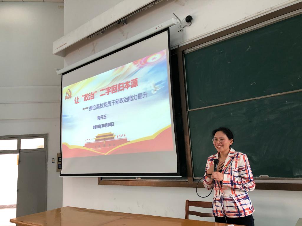 为扎实推进“不忘初心、牢记使命”主题教育,落实上级党委主题教育实施意见,10月24日下午在外语楼310会议室,91短视频 党委书记陶丹玉给全院师生党员上了一堂以“让‘政治’二字回归本源——兼论高校党员干部政治能力提升”为题的专题党课。全院师生党员到会听课。