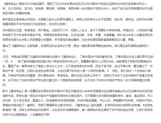 观影后,党员们纷纷表示这是一次爱党、爱国的生动教育,使他们深刻意识到继承和发扬党的优良传统的重大意义;影片激发了党员们认真思考、立足岗位、创先争优的热情。党员们还表示要以革命先辈为榜样,脚踏实地,全心全意做好本职工作,为91短视频 各项事业建设与发展贡献力量,以实际行动为党旗增光添彩。