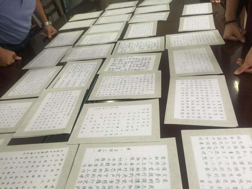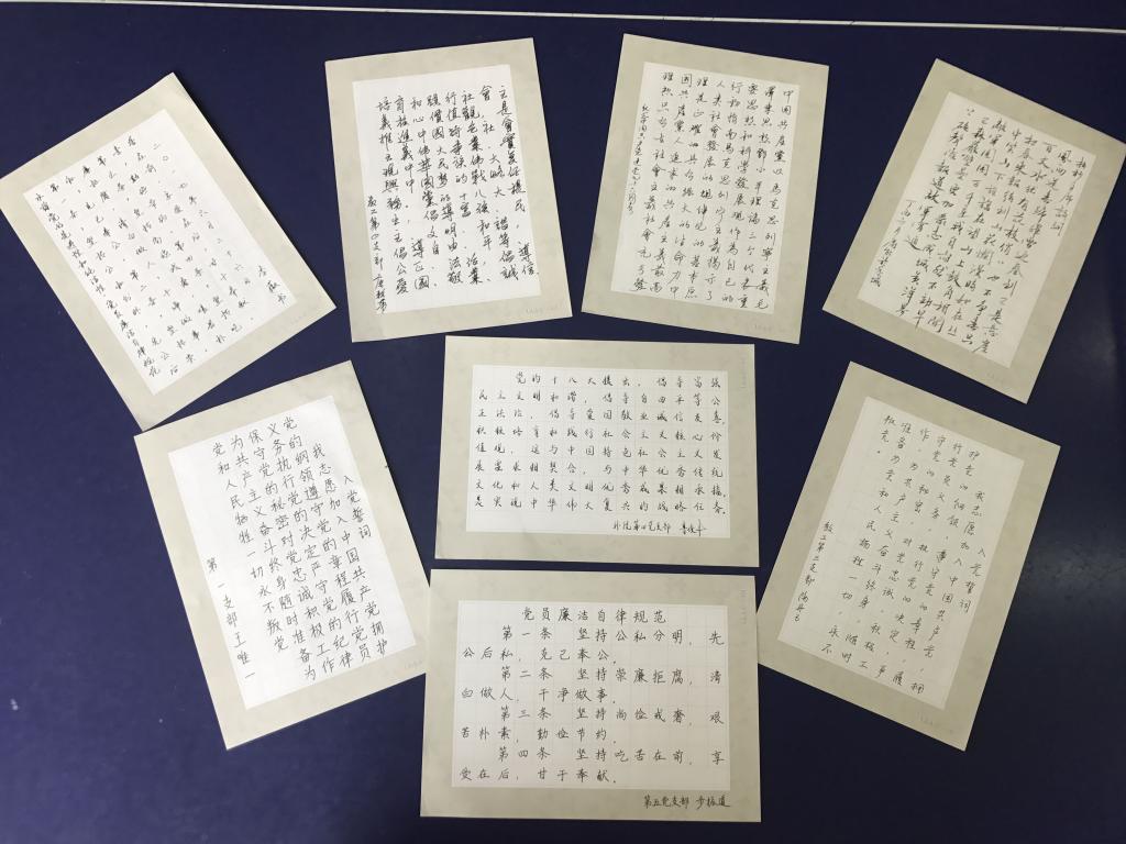 英语教工支部为了组织好此次活动,从前期酝酿,到过程实施和后期评奖,都做了精心设计和安排。在书法写作内容上,鲁俊丰和杨雪梅两位支部书记专门为五个支部分别设计了入党誓词、党章、社会主义核心价值观、廉政纪律准则以及爱国诗词等五个主题内容。党员们通过一次次练习书写,重温入党初心,牢记纪律准则,强化党员意识,抒发爱国热情,铭记作为一名共产党员的职责与荣誉。本次大赛党员教师参与热情高,参与率超过90%,活动激发了全体党员为人民服务的热情,有效增强了91短视频 党组织的凝聚力。