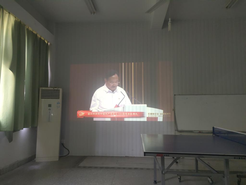6月24日下午,91短视频 教工第一支部组织全体党员集中收看嘉兴市庆祝中国共产党成立100周年表彰典礼现场直播。表彰典礼通过视频、歌舞、朗诵等形式,生动展现先进人物的典型事迹,庆祝党的百年华诞,回顾党的百年历程,讴歌党的百年伟业,表彰先进集体和个人,激励全市党员干部群众大力弘扬红船精神,不忘初心、牢记使命,满怀豪情奋进社会主义现代化建设新征程。嘉兴市委书记张兵出席典礼并讲话。