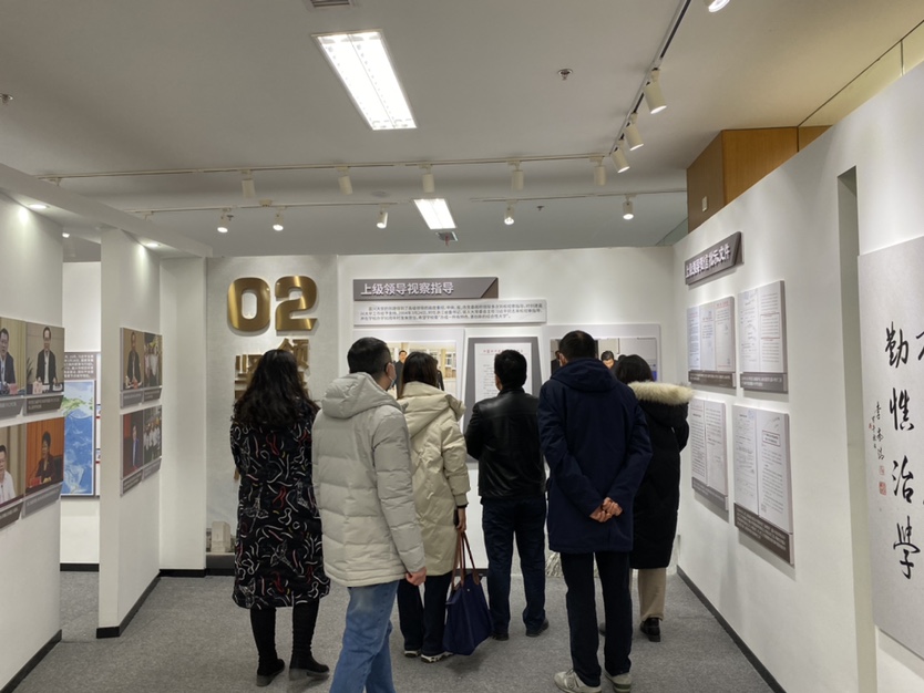 党员教师们首先来到位于图书馆六楼的嘉兴学院办学成果展示馆。结合学校努力建设有特色、善创新的综合性大学的实践历程,以学校“十三五”期间的蝶变跃升、跨越式发展为重点,成果馆集中展示了习近平总书记在浙江工作期间来校视察和致学校建校90周年贺信精神等重要资料。