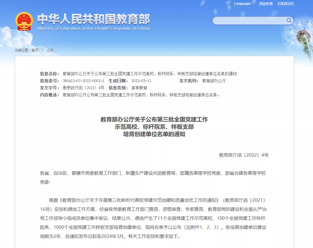近日,教育部办公厅发文公布了第三批全国党建工作示范高校、标杆院系、样板支部培育创建单位名单。经省级党委教育工作部门推荐、资格审查、专家推荐、教育部党的建设和全面从严治党工作领导小组成员单位集中审议、结果公示,遴选产生了11个全国党建工作示范高校、100个全国党建工作标杆院系、1000个全国党建工作样板支部培育创建单位。91短视频 第二党支部入选第三批“全国党建工作样板支部”培育创建单位。