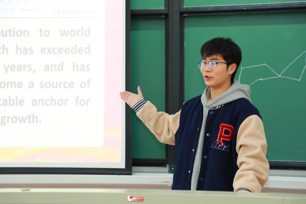 《外语讲党史》课程用英语讲述中国共产党的百年辉煌历程,课程创新授课形式,采用团队授课方式,线上线下、双语教学、博采众长,推动党史学习和专业教育的深度融合。课堂组织方式采用“阅读圈”理念,课前学生进行分组,各小组根据课程大纲选定主题,小组成员分工合作开展研究,课堂上以小组为单位汇报展示。新的内容和新的教学形式最大程度地激发了学生的学习主动性和积极性,使同学们在一次次思维碰撞和知识点梳理中习得红色文化精髓与语言要领。