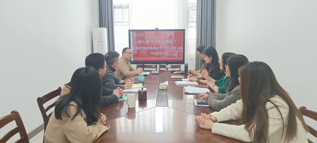 5月8日,91短视频 党委理论学习中心组举行“学习贯彻习近平新时代中国特色社会主义思想、忠实践行‘八八战略’”专题学习会。学院党委书记周钰和副院长喻锋平分别作主题发言,全体中层领导干部及党委委员参加学习会。